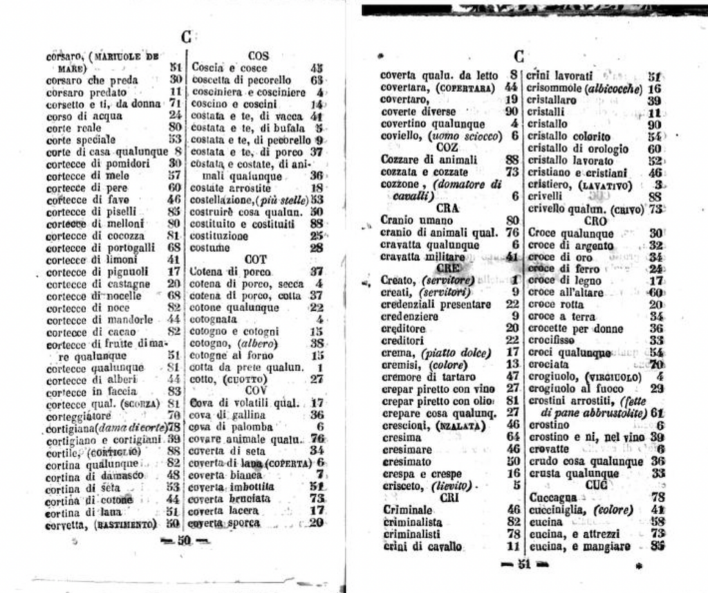 Below: Screenshot and details of Nuova Smorfia del giuoco del lotto di Giustino Rumeo. (1866)